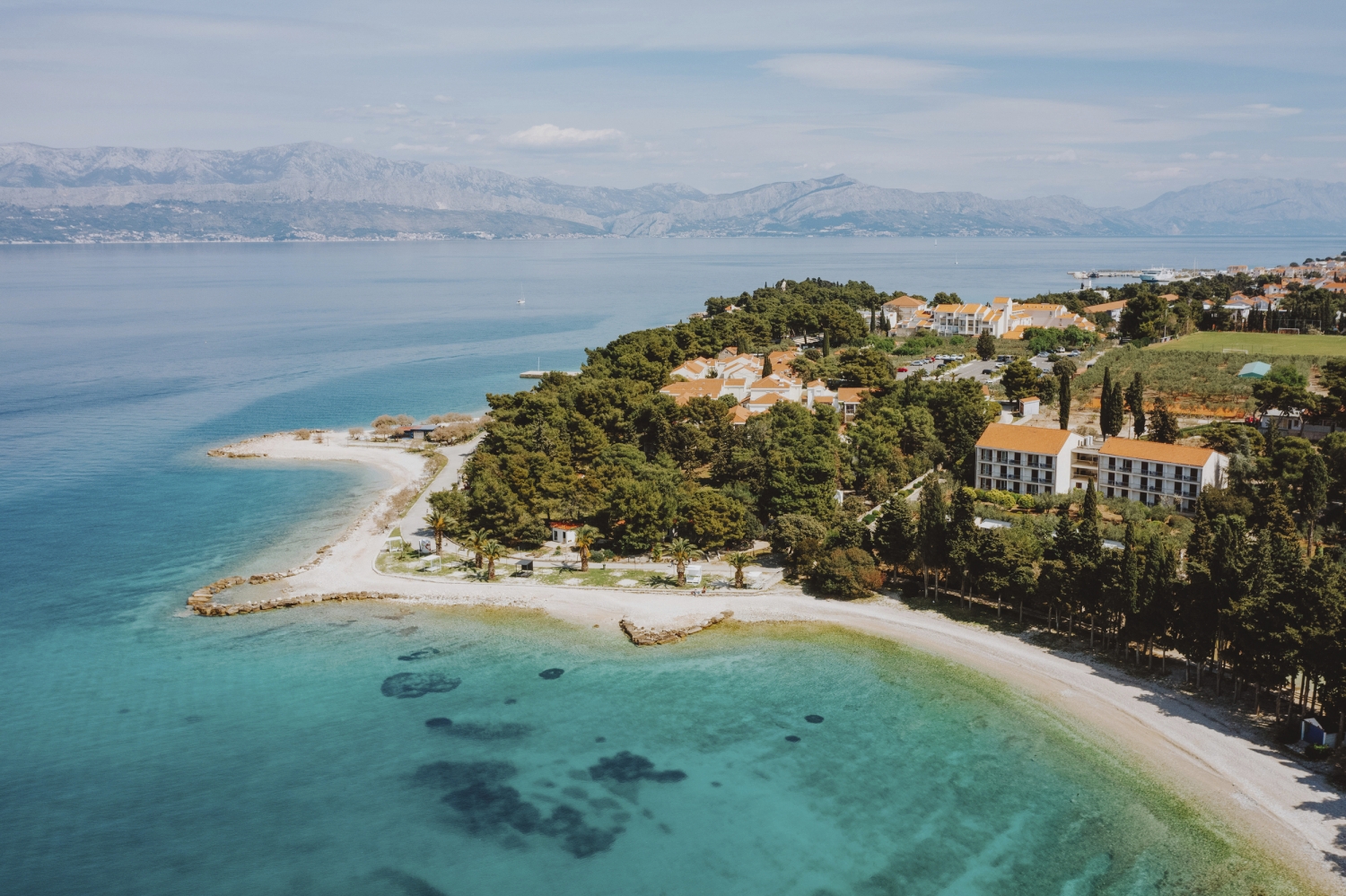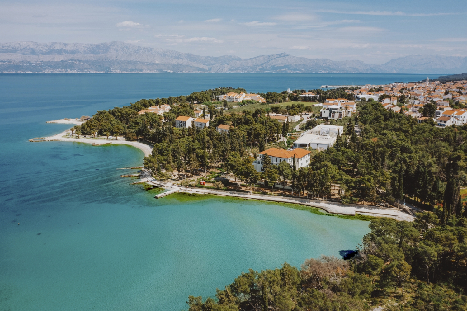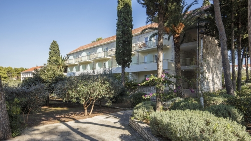 Die weitläufige, sehr beliebte Ferienanlage besteht aus zwei Gebäuden und liegt in einer großen, gepflegten Gartenanlage, 2 km von Supetar, direkt am Meer.