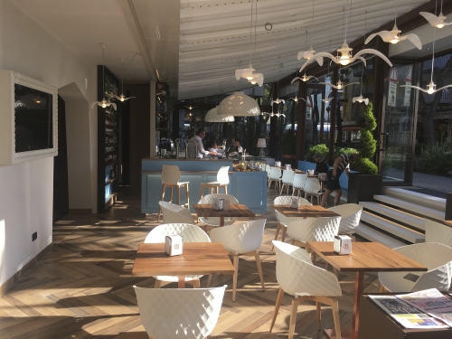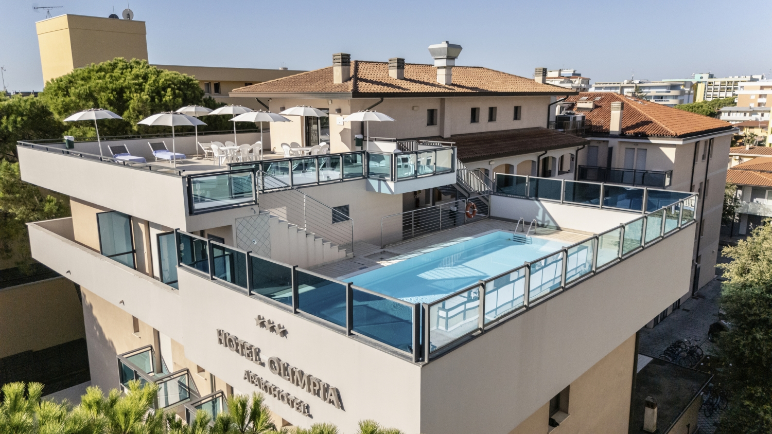 Lobby, Rezeption, Bar, Terrasse, klimatisierter Speisesaal, Aufzug, W-LAN in der Lobby u. den Zimmern (ohne Gebühr). Swimmingpool (ca. 9x5m) auf der Dachterrasse. Liegen am Pool nach Verfügbarkeit, ohne Gebühr. Parkplatz nach Verfügbarkeit, ohne Gebühr (Vorreservierung nicht möglich). Haustiere anmeldepflichtig, ca. €15,- pro Tag vor Ort.
