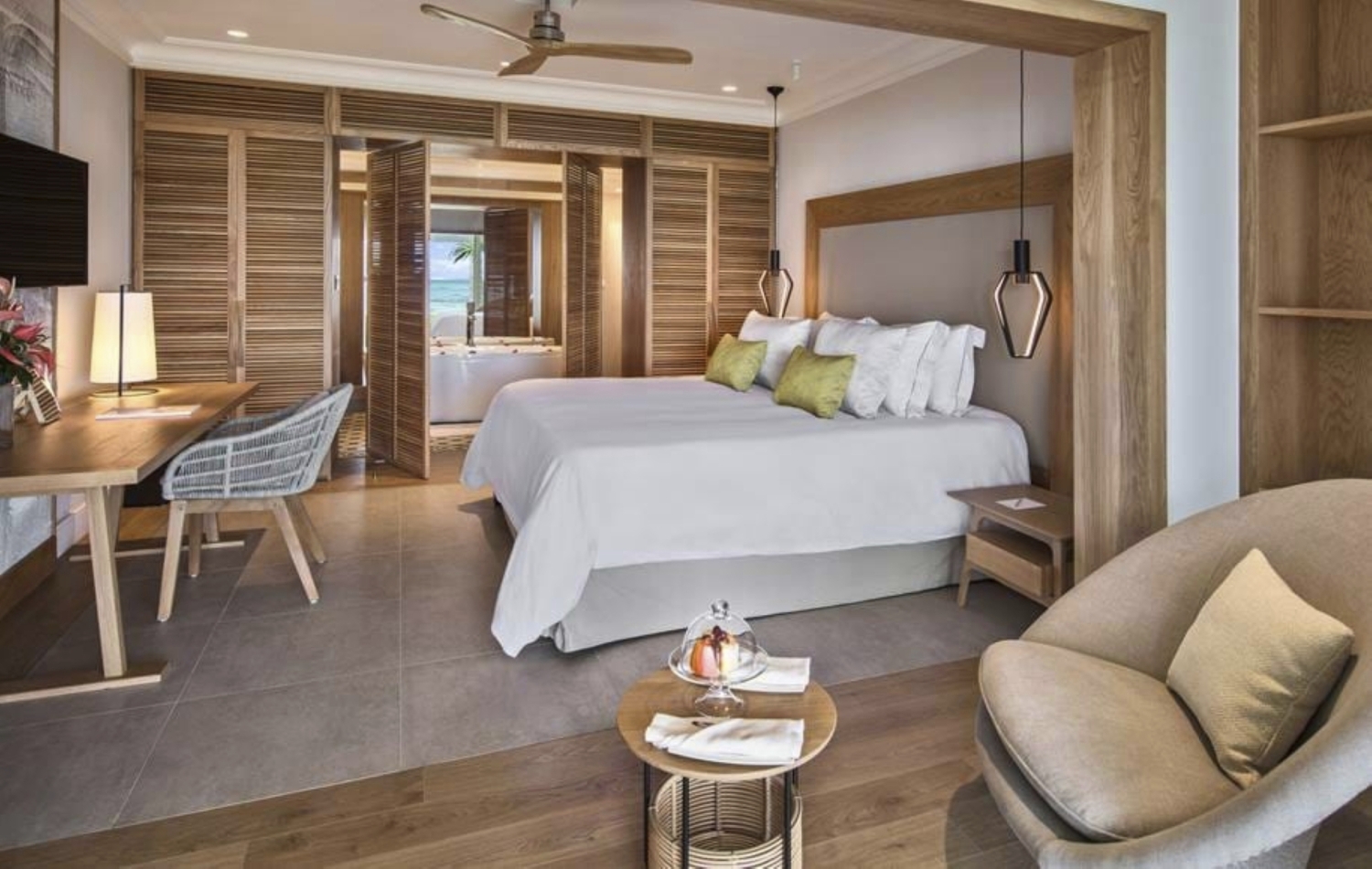 Die Zimmer und Suiten verteilen sich harmonisch zwischen dem historischen Manor House und charmanten Strandvillen. Alle Unterkünfte sind großzügig gestaltet und bieten wahlweise Blick auf das glitzernde Meer oder die gepflegten Gartenanlagen.
