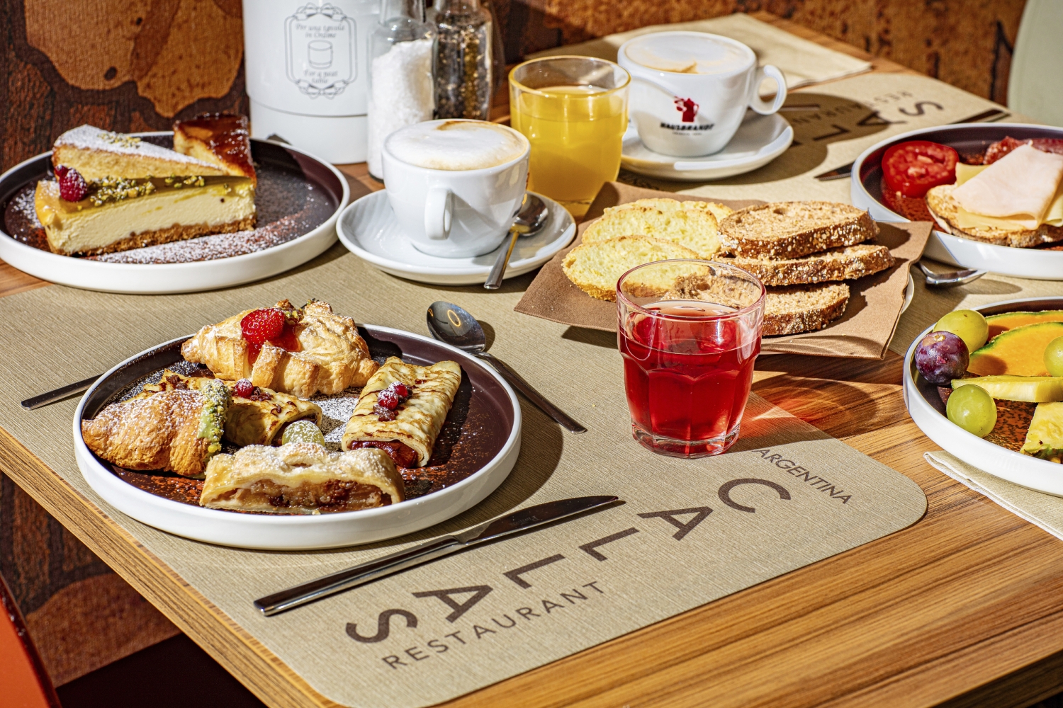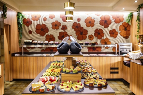 Frühstücksbuffet, mittags und abends Menüauswahl, Vorspeisen- und Salatbuffet. Vegetarische Gerichte.