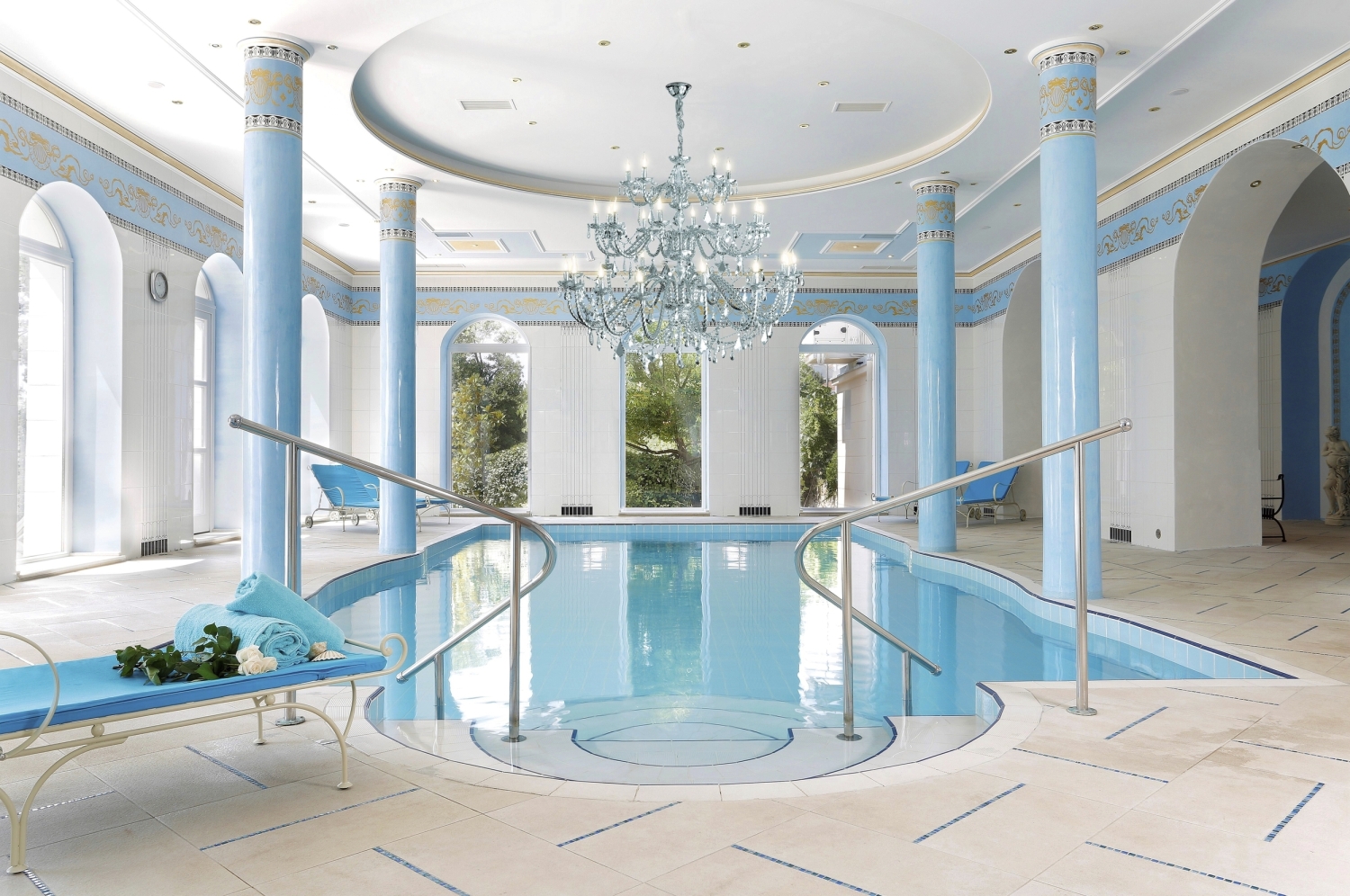 "PALACE & SPA WELLNESS" mit 25 m langen auf 28 Grad beheizten Meerwasser-Innen- und Außenpool mit Relax- und Ruhebereichen, Finnische Sauna, Dampfbad, Infrarotkabine, Wärmeliegen, Ruheraum, Fitnessraum (ohne Gebühr), Massagen und Beautytreatments mit exklusiven Pflegeserien (gegen Gebühr). Parkplätze nach Verfügbarkeit (ohne Gebühr), Ladestation TESLA mit Universalanbindung auch für andere Automarken.Tiefgaragenstellplätze gegen Gebühr Euro 10,- pro Tag (Voranmeldung). Kleine Haustiere auf Anfrage. Reinigungsgebühr: Euro 20,- pro Tag. Hunde dürfen nicht ins Restaurant, die Bar, die Terrassen und Liegewiesen,