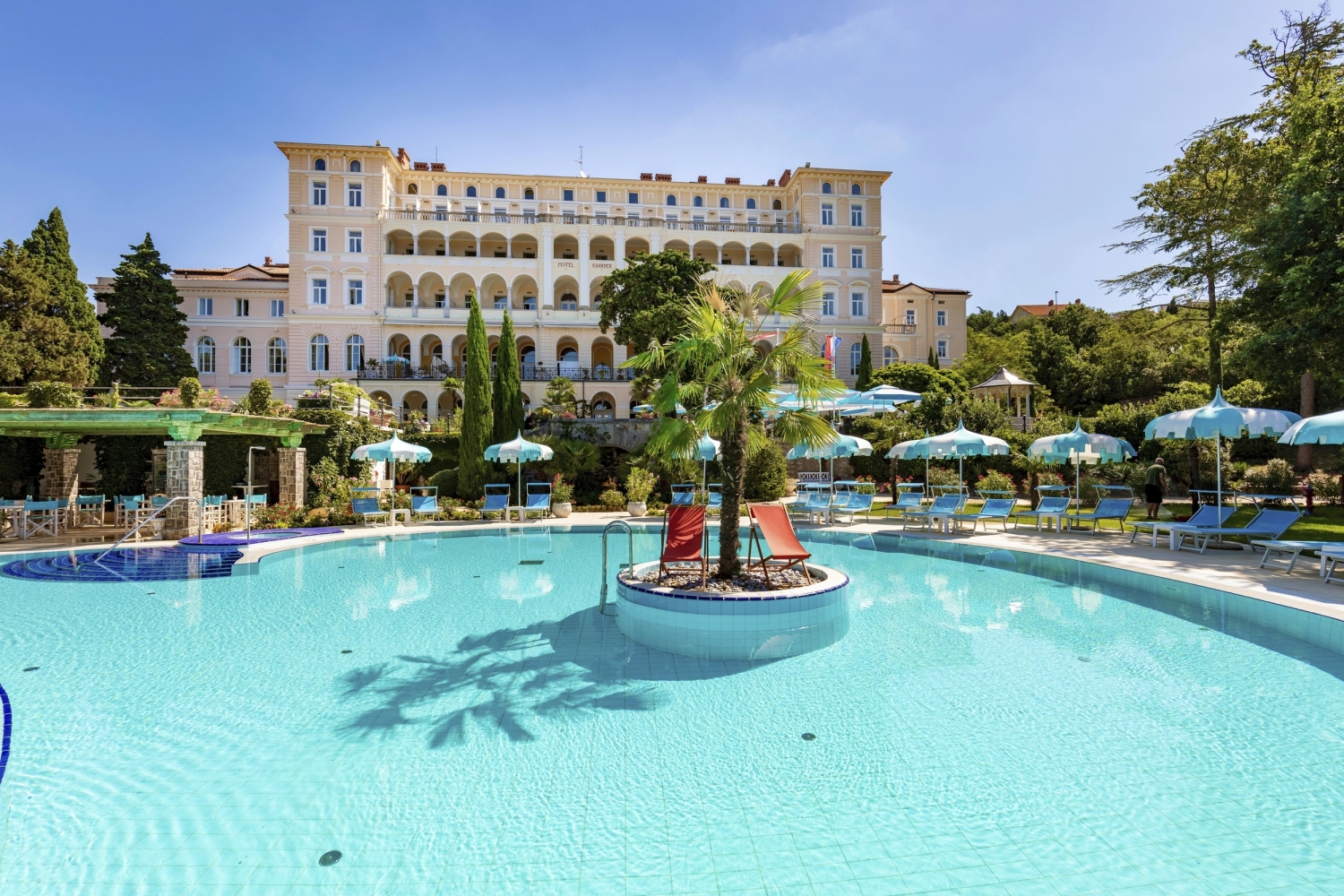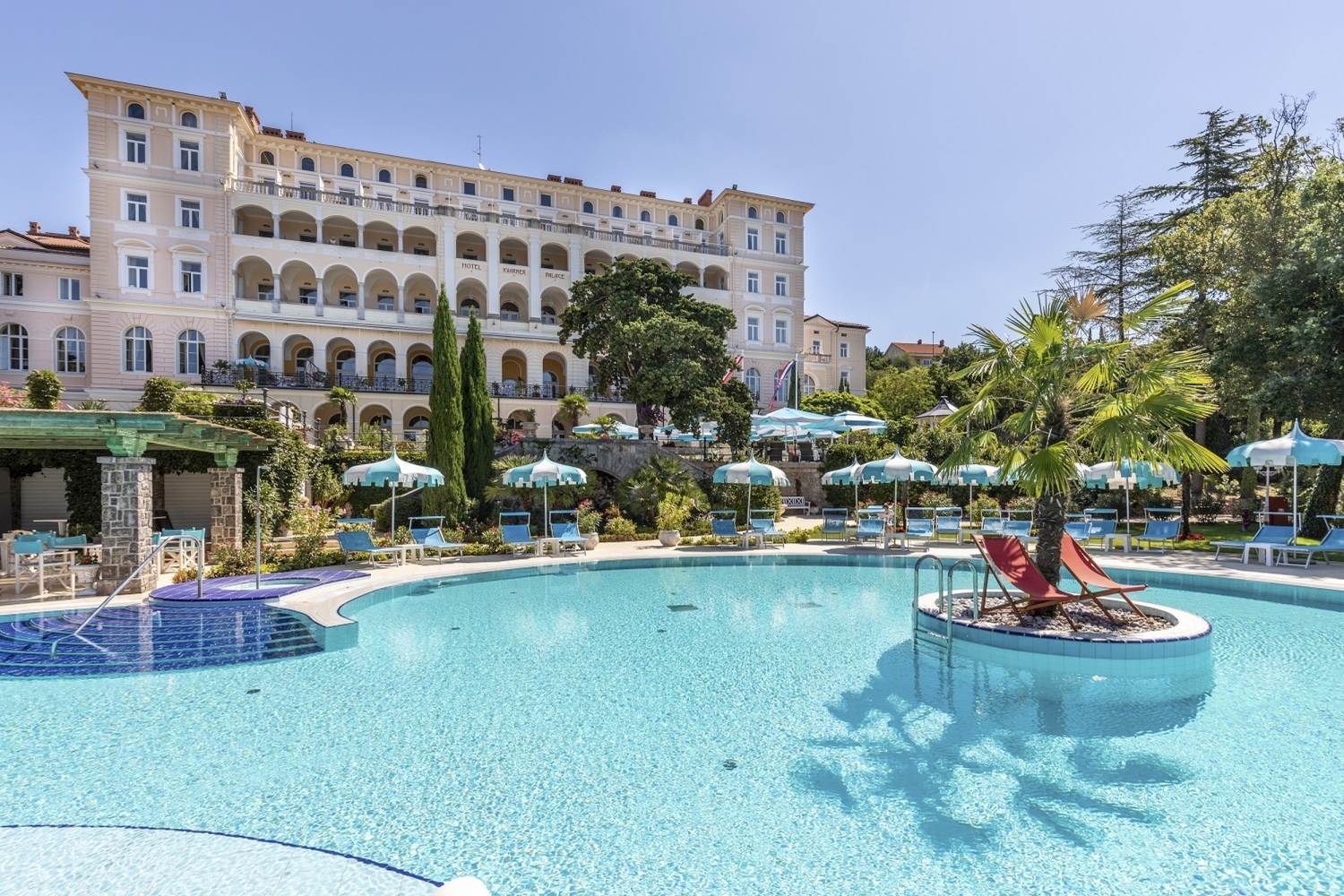Ca. 250m vom „Palace Beach“ Strandabschnitt am öffentlichen Sandstrand von Crikvenica entfernt. Kostenlose Liegen und Sonnenschirme am Pool und im Wellnessbereich nach Verfügbarkeit.