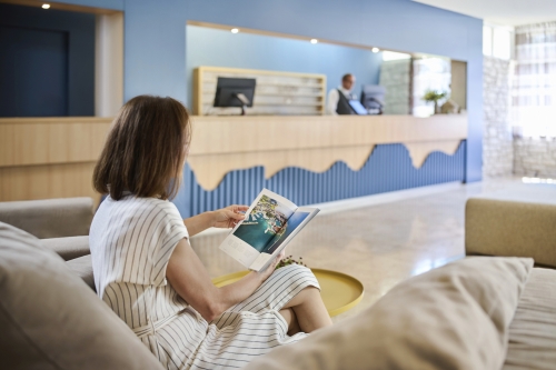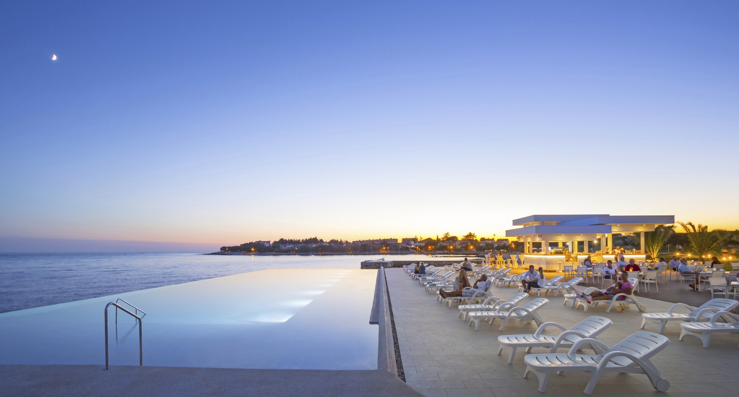 Das Hotel befindet sich am Rande eines Pinienwaldes in unmittelbarer Nachbarschaft zum „Aminess Maestral” Hotel, direkt am Meer und ist ca. 1km von Novigrad entfernt.
