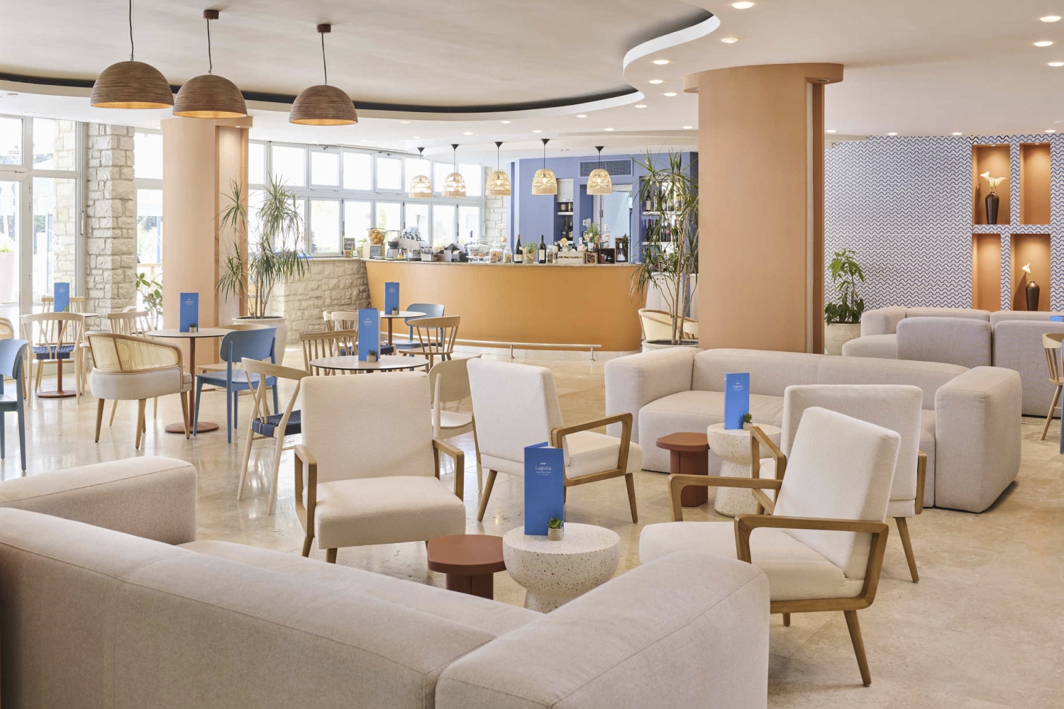 Alle 220 Zimmer mit Dusche/WC, Föhn, Telefon, W-LAN (ohne Gebühr), Sat-TV und Klimaanlage, ca. 13m² (Typ DA3/EB1). Typ DB3: Zimmer mit Balkon, ca. 16m². Typ DM3: Zimmer mit Balkon zur Meerseite, ca. 16m². Gitterbett anmeldepflichtig, ohne Gebühr.
