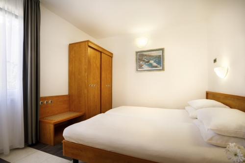 Studios „Amarin“ (ROVRESOC): Studio Typ 1A2 (2 Personen): Ca. 25m², Wohnraum mit Doppelbett (160x200), Küchenzeile mit Mikrowelle und Kaffeemaschine, Dusche/WC, Föhn, Safe, Klimaanlage, Sat-TV, Telefon, W-LAN (ohne Gebühr, Teilempfang) und Terrasse. Typ 1E1: Studio zur Alleinbenützung. Alle m² Angaben beziehen sich auf Wohnfläche inkl. Bad und Balkon. Typ 1T3: (3 Personen): Ca. 23m², Wohn-/Schlafraum mit Doppelbett (160x200) und Schlafsessel (80x190), Küchenzeile mit Mikrowelle und Kaffeemaschine, Dusche/WC, Föhn, Safe, Klimaanlage, Sat-TV, Telefon, W-LAN (ohne Gebühr, Teilempfang) und Terrasse. Gitterbett ohne Gebühr, anmeldepflichtig.