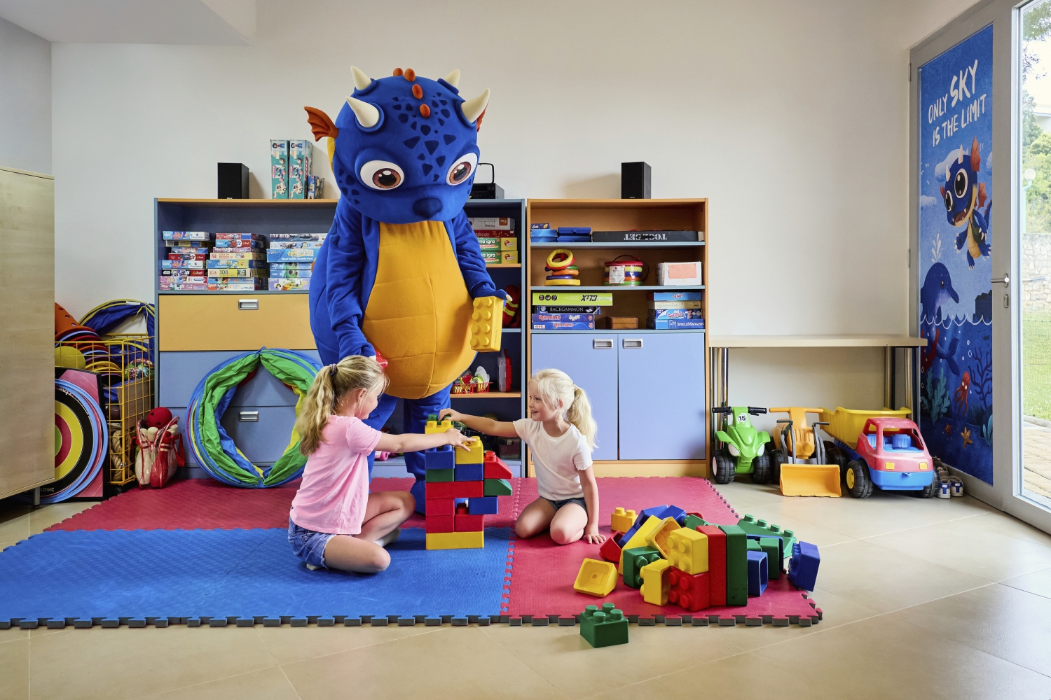 In der Hochsaison: Club für Kinder von 4-12 Jahren, Animation für Erwachsene und Teenager. In der restl. Zeit Spielzimmer, Minidisco, Schwimmkurs für Beginner und Abendprogramm für Kinder und Teens. Gegen Gebühr: Wassersportarten, Fahrradverleih. Ca. 300m entfernt Sportzentrum „Petalon“ mit Tennis, Tischtennis, Minigolf, Boccia, Basketball, Tauchcenter und vielem mehr.