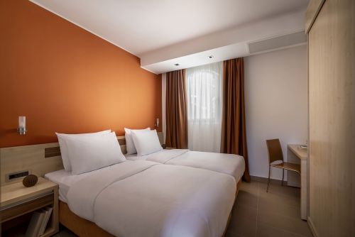 Studio Typ 1A3 (max. 3 Personen): Ca. 40m², Wohn-/Schlafraum mit 2 Betten, durch eine Glaswand getrennt, zusätzliche Schlafcouch für 1 Person, Küchenzeile mit Kaffeemaschine und Mikrowelle, restl. wie in den Pavillons. Appartement Typ 2M3 (max. 3 Personen): In erster Reihe zum Meer, ca. 35-38m², Schlafzimmer mit 2 Einzelbetten und Wohnraum mit Schlafsessel, weiteres wie Typ 1A3. Appartement Typ 2B4 (max. 4 Personen): Ca. 30-38m², 1 Doppelzimmer und Wohn-/Schlafraum mit Couch für 2 Personen, restl. Ausstattung wie Typ 1A3. Appartement Typ 2C4 (max. 4 Personen): Ca. 45-51m², Schlafraum mit Doppelbett, Wohn-/Schlafraum mit Couch für 2 Personen, restl. Ausstattung wie Typ 1A3. Appartement Typ 3D5 (Max. 6 Personen): nur auf Anfrage möglich, 2 Schlafzimmer und Wohn/-Schlafraum mit Ausziehcouch für 1 Erw. oder 2 Kinder bis 11 J., Austattung wie 2C4, ca. 45-55m². Alle m² Angaben beziehen sich auf Wohnfläche inkl. Bad und Balkon. Haustiere sind nicht erlaubt. Gitterbett anmeldepflichtig, ohne Gebühr.
