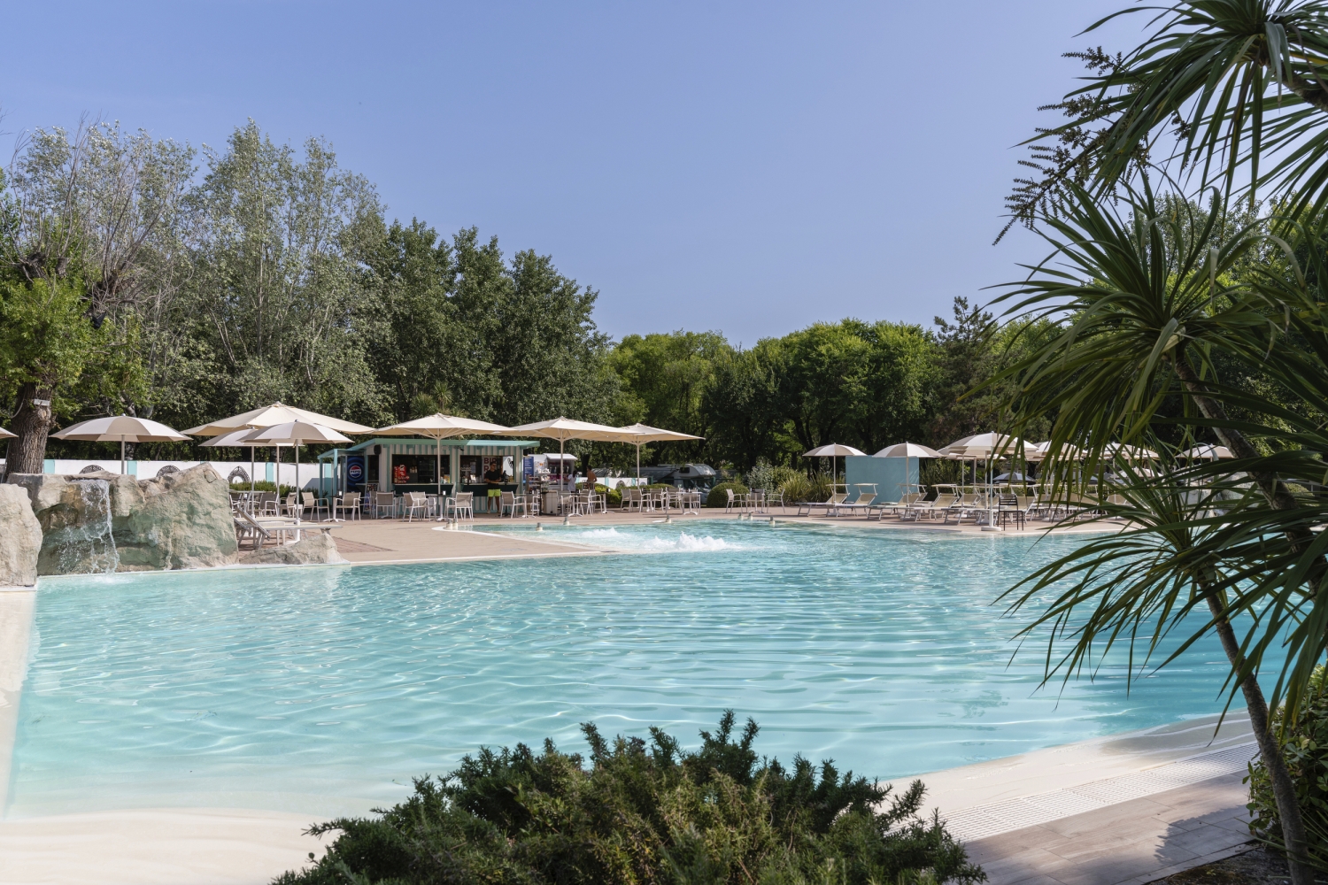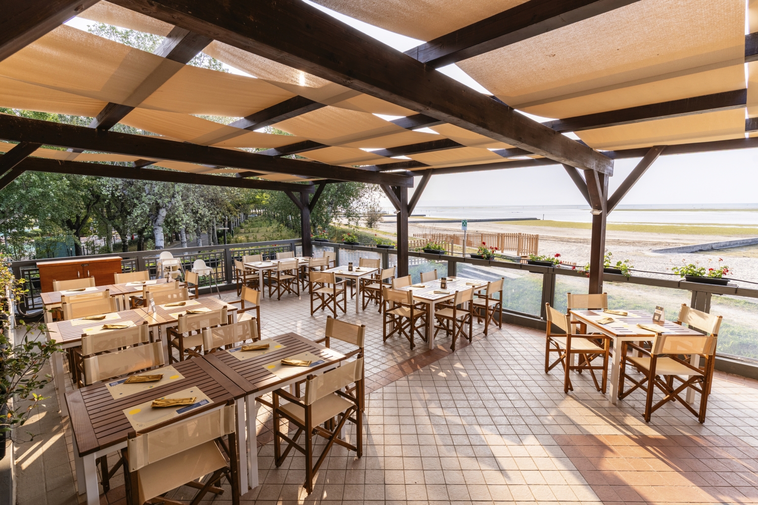 120 Hektar große Anlage mit "Front House" mit Rezeption für Schlüsselübergabe, Restaurant "Al Casone", Restaurant "Terrazza Mare", Bistrot Rosmarino, Marina Cafe direkt neben der sowie einem Yacht-Club direkt neben dem eigenem Porto mit Bootsverleih. 25 Meter langer Schwimmingpool mit gemütlichen Sonnenliegen, Kinderbecken mit Piratenabenteuerspielplatz ."Golf Grado" direkt neben der Driving Ranch des anliegendem 18-Loch Championschip:-olfplatzes, Kite-Bar, Bottega, Walk & Bike Area, 2 Räder pro Einheit inklusive in der Bike Area verfügbar, Kidzone, Dependance mit Gym. Hunde: 20 Hektar große Hundewiese, vor Ort zu Zahlen 10 € pro Tag. Gitterbett vor Ort extra zu zahlen 3 € pro Tag (nicht in jeder Einheit verfügbar).