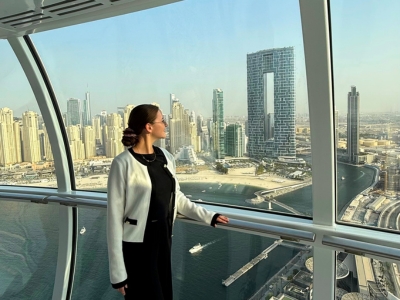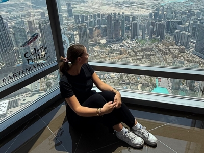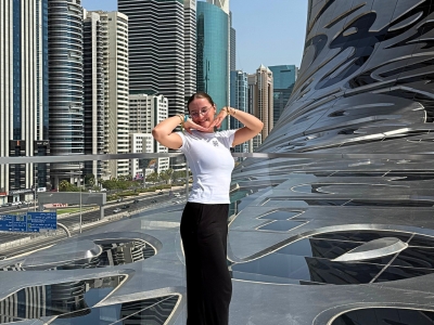 Julia hatte außerdem die Gelegenheit, das Emirates Training Center in Dubai zu besuchen. Dort wird das Kabinenpersonal auf höchstem Niveau auf seine Aufgaben ausgebildet. In realistischen Trainingsumgebungen lernen die zukünftigen Flugbegleiter·innen alles, was für einen sicheren und angenehmen Flug wichtig ist – vom professionellen Service über perfektes Auftreten und Make-up bis hin zu Notfallsituationen.