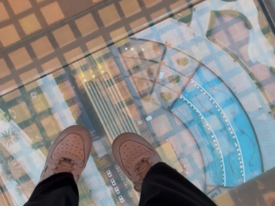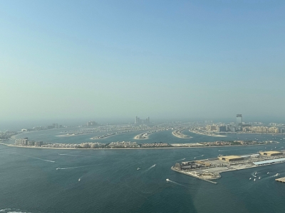Man hat einen unglaublichen Blick auf Dubai, kann die berühmte Palme von oben sehen mit den beiden imposanten Luxushotels Atlantis The Palm 5* und Atlantis The Royal 5*. Von weitem kann man am Horizont den berühmten Burj Al Arab erblicken.